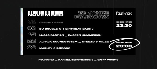 Einlass 23:30 Uhr
